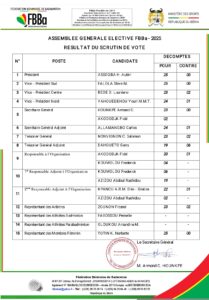 - Le Badminton béninois poursuit son chemin dans la stabilité. Réunis en Assemblée générale ce samedi 27 décembre 2025 à Abomey-Calavi, les délégués ont largement reconduit Aubin Assogba à la tête de la Fédération béninoise de Badminton. Président sortant, il bénéficie une nouvelle fois de la confiance de la famille du badminton national à l’issue d’un scrutin clair, transparent et sans équivoque.