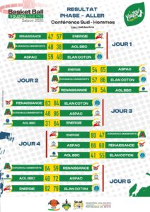 Renaissance BBC et AOL en difficulté : Au bas du classement, Renaissance BBC et AOL ferment la marche de cette première étape de la conférence Sud. Les deux équipes devront rapidement se ressaisir lors des prochaines journées pour espérer rester dans la course. Cette première phase de la Youzou Ligue Pro a déjà donné un aperçu du niveau de compétition qui attend les formations engagées. Entre domination, surprises et désillusions, la suite de la saison promet encore de belles batailles sur les parquets béninois.