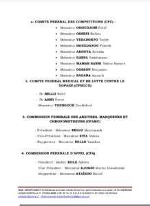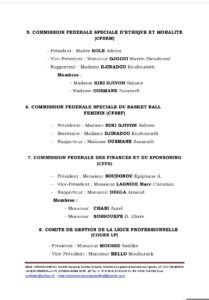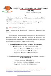La Fédération Béninoise de Basket-BBall (FBBB) a procédé à la nomination des Présidents et Membres des Commissions Fédérales et des Comités, conformément aux dispositions des articles 77, 78 et suivants du Règlement Intérieur.