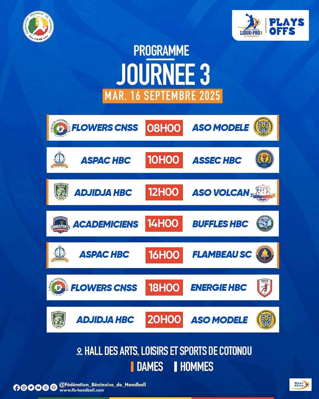 Adjidja HBC : des performances contrastées : Chez les hommes, Adjidja HBC s’est bien ressaisi après son revers inaugural. Les militaires ont dominé les Académiciens sur le score de 33–25, s’offrant ainsi une victoire convaincante qui les relance dans la course. Un succès qui compense partiellement la déception des dames, battues de justesse par Flowers CNSS (29–27). Les équipes d’Adjidja montrent du caractère, mais devront trouver davantage de régularité pour rester dans la dynamique des favoris.