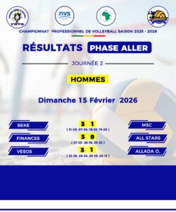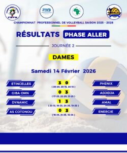 La 2e journée du Championnat professionnel de volleyball, disputée les 14 et 15 février 2026, a offert aux passionnés de belles confrontations aussi bien chez les Hommes que chez les Dames. Entre confirmations, surprises et démonstrations de force, cette étape de la compétition a confirmé le niveau relevé de la saison en cours.